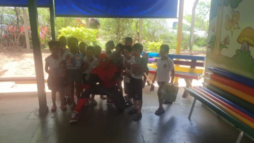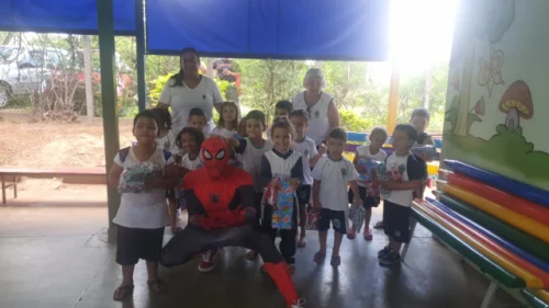 Para tornar o momento ainda mais especial, o colaborador Willian da Silva participou da entrega fantasiado de Homem-Aranha, interagindo com os alunos e tornando a experiência ainda mais divertida e inesquecível para as crianças.