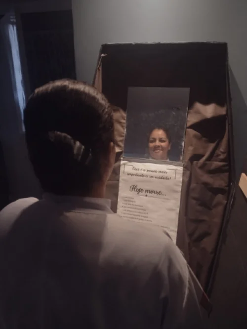 Entre as atividades, houve a demonstração do descarte correto de perfurocortantes, utilizando uma caixa coletora viva que oferecia doces ou "picadinhas" – simbolizando os riscos de acidentes com esses materiais, caso não seguidos os procedimentos de segurança.