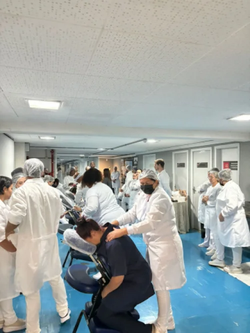 A programação começou dia 13 com o Momento de Relaxamento. A mesma atividade foi oferecida também nos dias 14 e 15 aos profissionais de enfermagem do hospital.